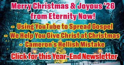 To round out the year, Eternity Now's newsletter discusses how we can STILL help you get a great Christmas gift, most Americans want more of Jesus' joybells, and Kirk Cameron goes on the broad way instead of narrow road regarding hell.